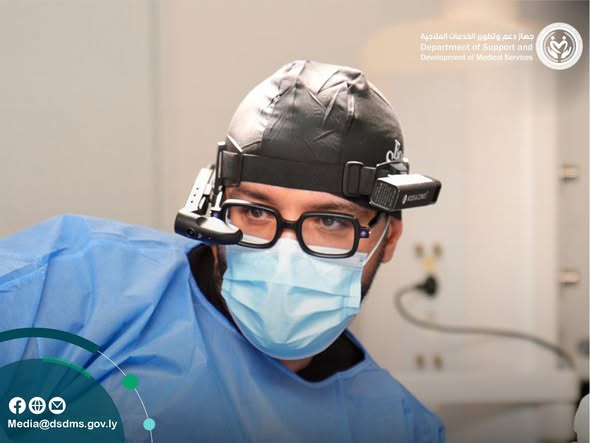 دعم وأشراف جهاز دعم وتطوير الخدمات العلاجية تصل الجراحات الذكية الي مستشفى الهضبة الخضراء العام (باستعمال نظارات Rods & Cones الذكية) والقيام باؤل عملية في مستشفى عام بطرابلس في مجال الشلل الرعاش بدعم وأشراف الجهاز