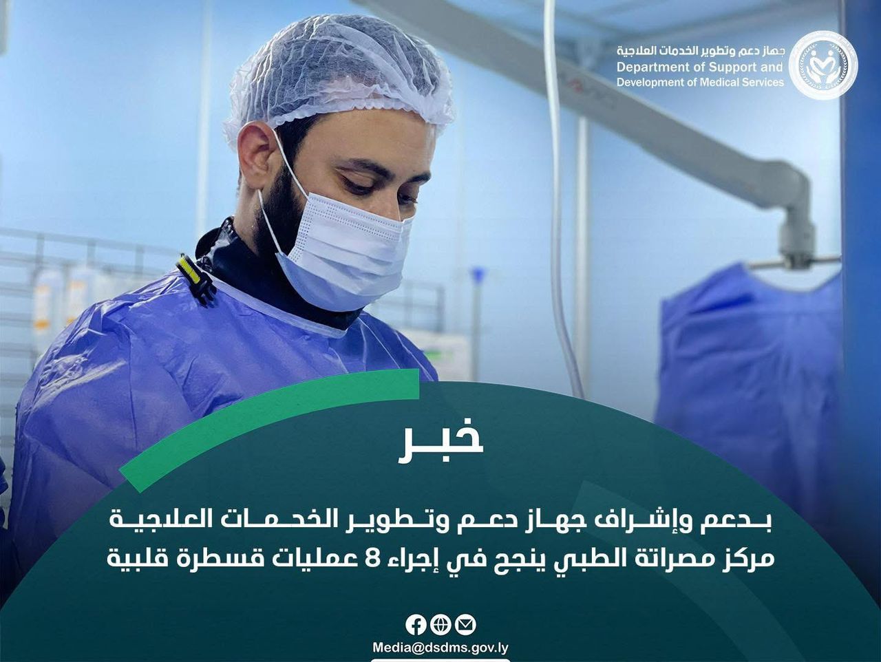 بدعم وإشراف جهاز دعم وتطوير الخدمات العلاجية، تمكّن الفريق الطبي بمركز مصراتة الطبي اليوم من إجراء ثماني عمليات قسطرة قلبية ناجحة.